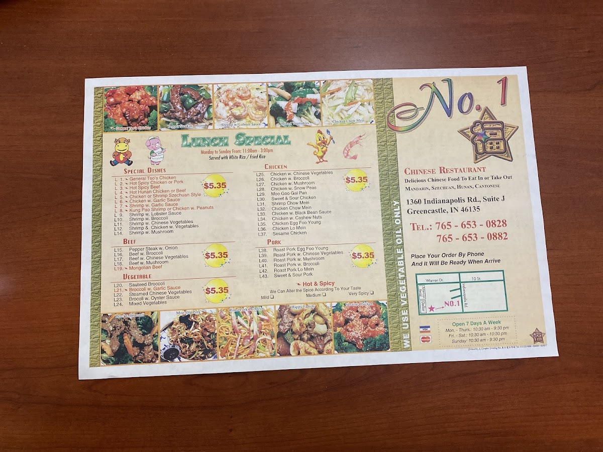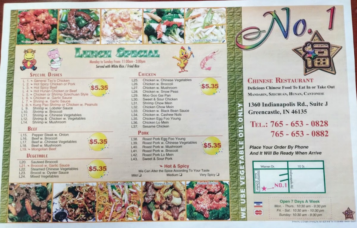 Welcome to No 1 Chinese Restaurant - Greencastle, where authentic flavors meet generous portions! Nestled at 1360 Indianapolis Rd, Greencastle, IN, this culinary gem is ideal for takeout enthusiasts seeking quality Chinese cuisine.